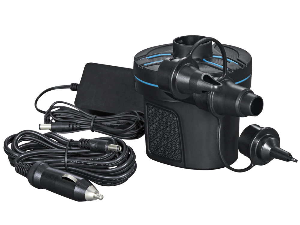 Con tres boquillas incluidas, la bomba infla fácilmente distintos tipos de artículos inflables.