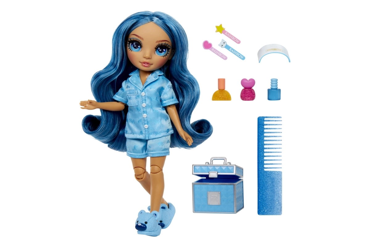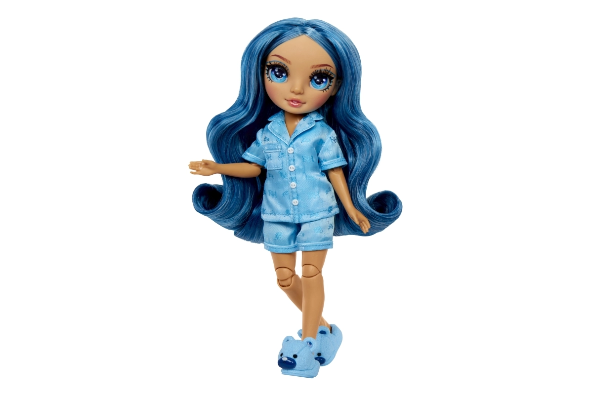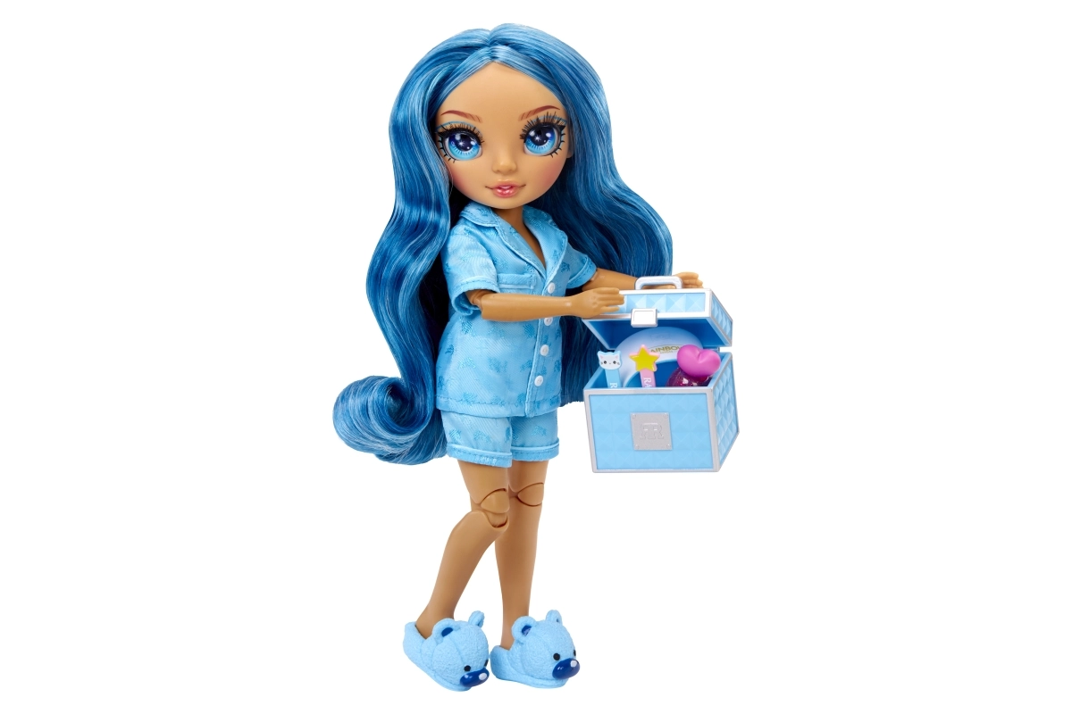 Vive una diversión sin fin con esta encantadora muñeca Skylar Blue. ¡Las fiestas de pijamas nunca habían sido tan elegantes e inspiradoras para un juego impulsado por la creatividad!