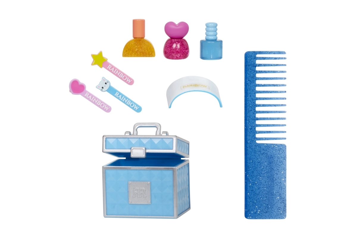 Skylar incluye accesorios para uñas: una pequeña maleta azul con esmaltes, limas y una lámpara UV. Además de ser preciosa, es totalmente articulada y se adapta fácilmente a diferentes poses para aún más opciones de juego.