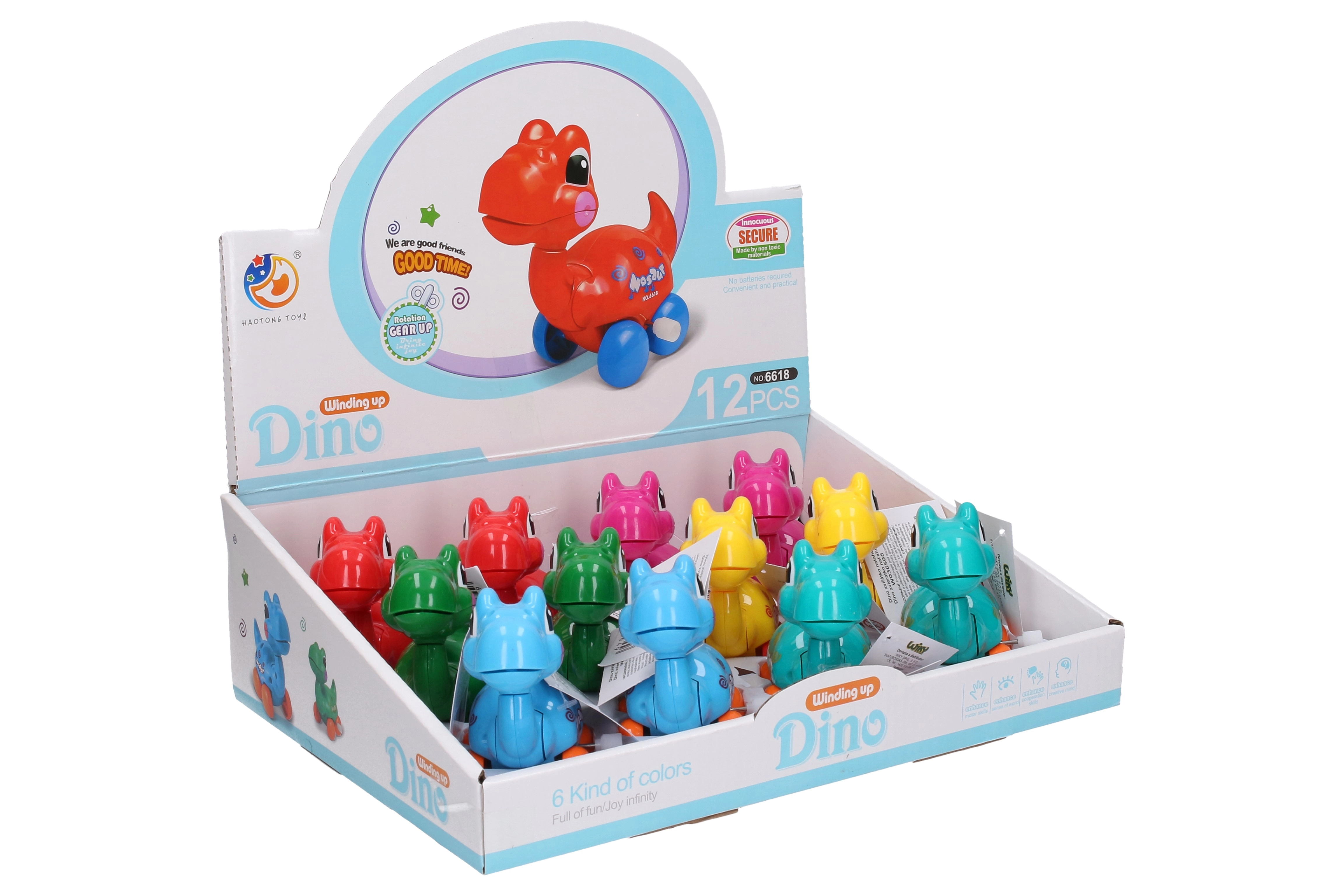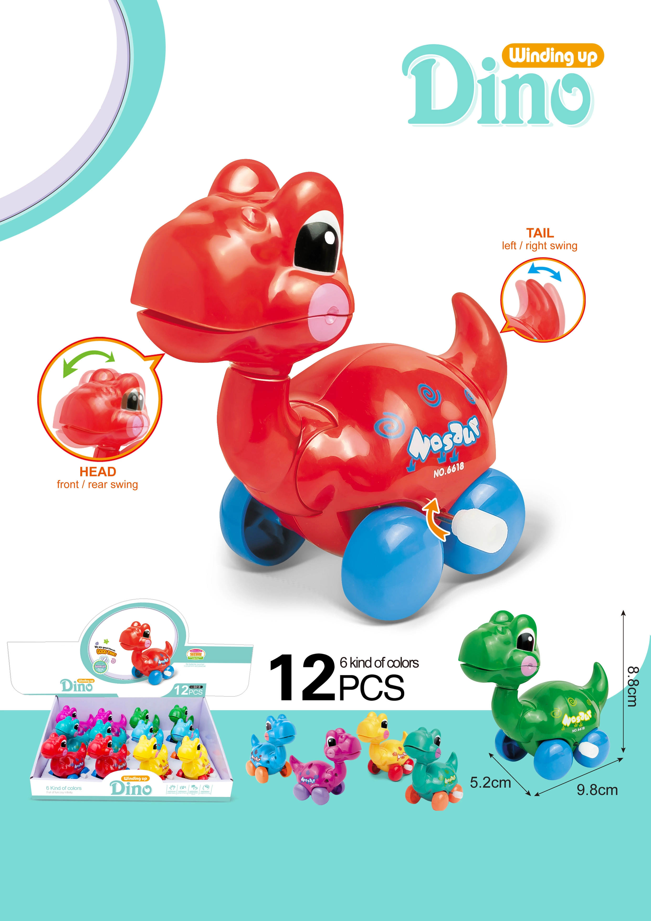 Enriquece el juego de tus hijos con este dinosaurio de cuerda que aporta mucha diversión. Cada dinosaurio tiene un tamaño de 10 cm, ideal para manos pequeñas y de fácil manejo. Está disponible en seis llamativos colores: azul, verde, rojo, amarillo, rosa y turquesa, lo que ofrece infinitas posibilidades para juegos creativos.