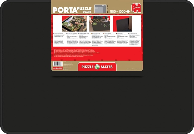 La práctica base para rompecabezas JUMBO Porta Puzzle Board facilita el montaje y el traslado de una imagen a medio hacer. Es ligera, compacta y está diseñada para rompecabezas de hasta 1000 piezas (aprox. 68 × 49 cm). Se trata de una base independiente sin solapas: el rompecabezas no está incluido.
