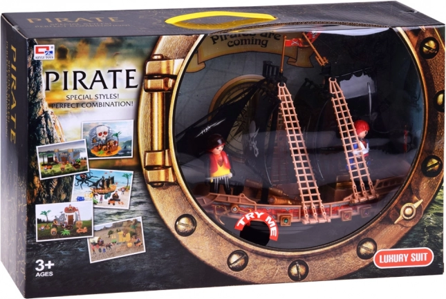 El botón lateral activa sonidos de batalla y luces intermitentes en el timón y la cubierta. Gracias a las ruedas, el barco se desplaza fácilmente por el suelo: ideal para grandes expediciones navales.