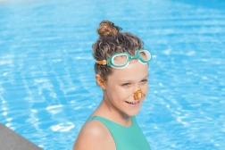 El producto está fabricado con materiales sin látex, lo que aporta mayor seguridad. Tu hijo estará protegido con estas gafas en cada nueva aventura acuática, ya sea nadando, buceando o jugando en el agua.