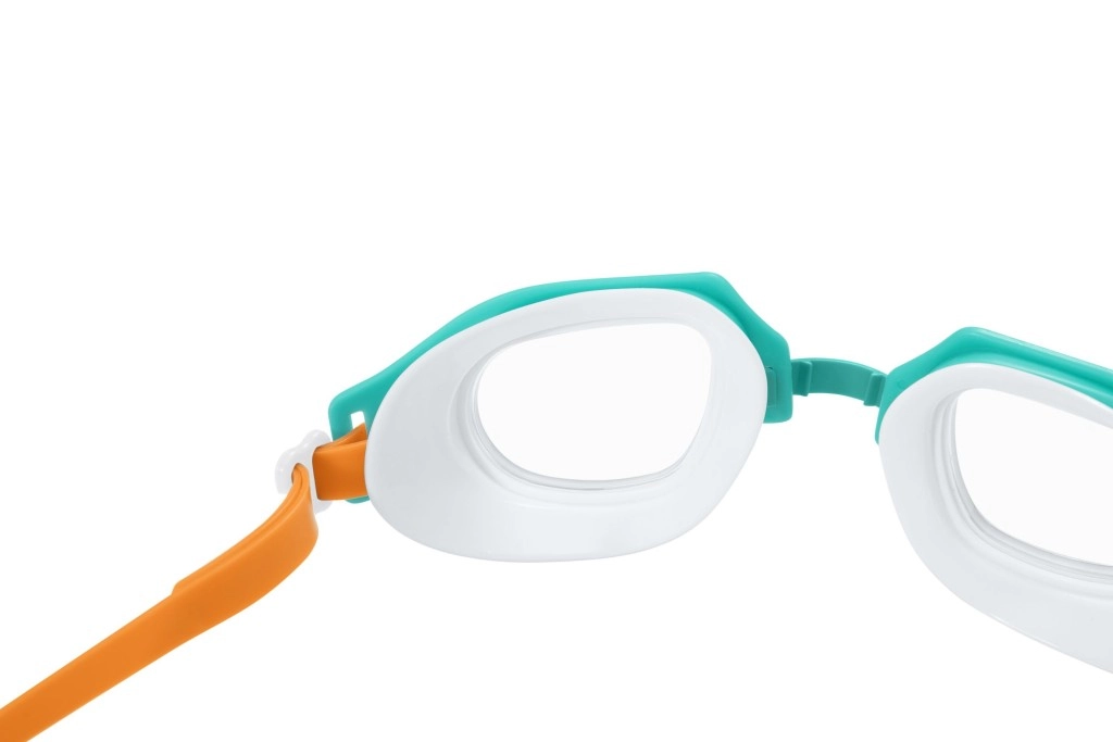 Las gafas de natación para niños a partir de 7 años están equipadas con correas ajustables que permiten un ajuste preciso a la cabeza del usuario. Las lentes tienen protección UV que protege los ojos del niño de los rayos solares dañinos. Las copas suaves y cómodas garantizan confort y evitan la entrada de agua.
