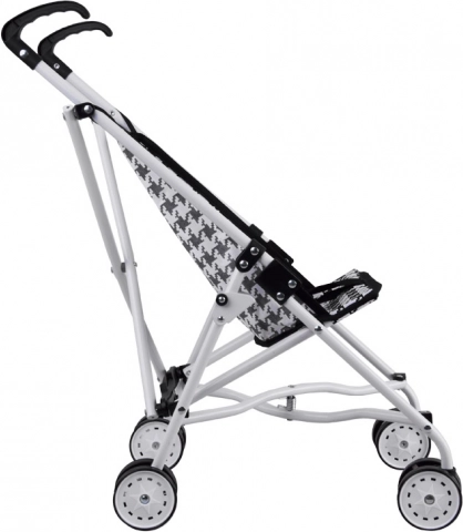 Descubre el compañero ideal para el juego creativo: un cochecito plegable para muñecas con estampado pepito en blanco y negro. El robusto marco metálico, los mangos cómodos y el cinturón de seguridad garantizan que la muñeca esté protegida y que el niño disfrute del paseo sin esfuerzo. Gracias a sus dimensiones compactas, el cochecito se transporta y almacena fácilmente.