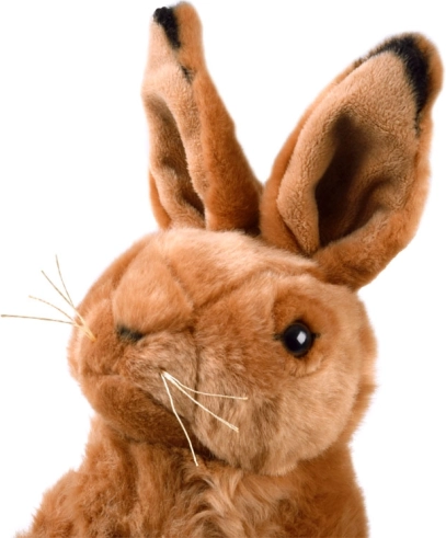El conejo de peluche captura los detalles de un verdadero liebre, incluidos sus largos oídos y adorables bigotes.