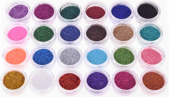 El kit contiene todo lo necesario para crear deslumbrantes tatuajes brillantes con 24 colores diferentes de purpurina.