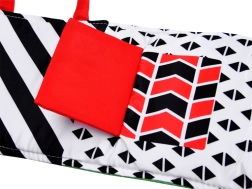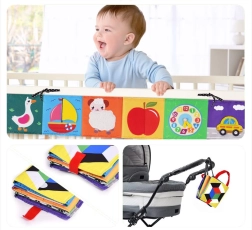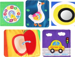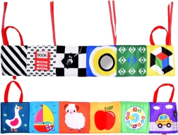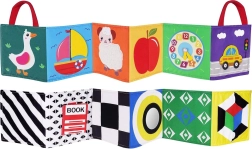 Este libro sensorial plegable está diseñado para favorecer el desarrollo de todos los sentidos del bebé desde los primeros meses de vida. Incluye diversas texturas, elementos crujientes, un espejito y largas cintas de tela que estimulan el tacto, la vista y el oído. Al plegarse, es compacto y fácil de transportar, por lo que resulta ideal para salir de casa. Dos pequeñas orejitas cosidas facilitan que el niño lo sujete y lo lleve.