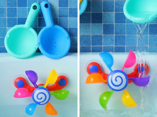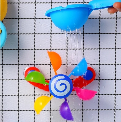 Permite que tu hijo disfrute con vasitos móviles de colores que giran cuando se vierte agua sobre ellos, enseñándole conceptos de movimiento y retroalimentación. Este juguete fomenta el desarrollo motor, las funciones cognitivas y las habilidades de coordinación. Durante el juego, el niño puede aprender colores, contar e imaginar diferentes historias. Este juguete de baño es fácil de reubicar y desmontar, permitiendo colocarlo en los laterales de la bañera, la ducha o la piscina. El arcoíris de vasitos comienza a girar mientras el agua fluye, estimulando el oído del niño.