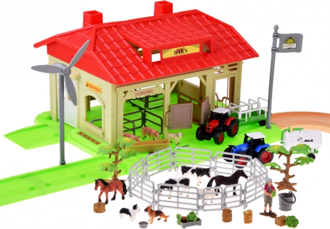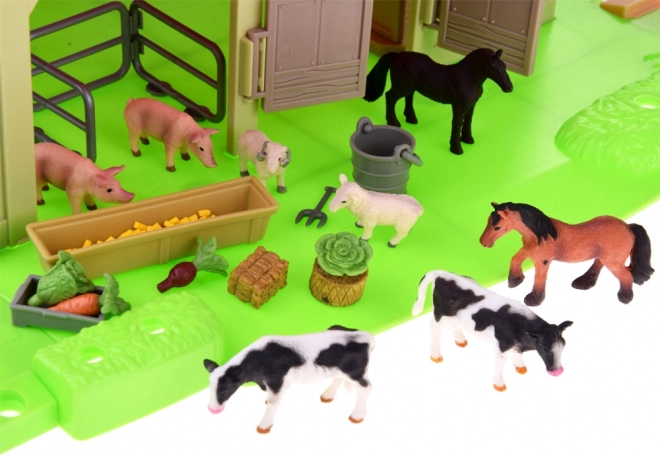 - Granja completa en una caja: edificios, establos, molino de viento, farolas, vallas y árboles.