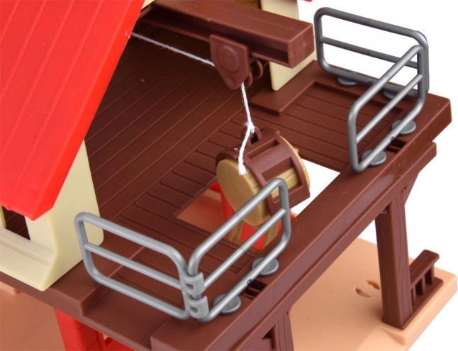 - Granero y dependencias agrícolas, molino de viento, farolas, escalera, barril de agua, camino verde y marrón