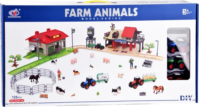 Descubre un completo set infantil de juego de granja con 125 piezas, que incluye 3 tractores con remolques, establos y edificios, animales y numerosos accesorios realistas. Desde cercados y herramientas hasta alimento: esta colorida granja de plástico ofrece juego creativo y educativo para pequeños granjeros.