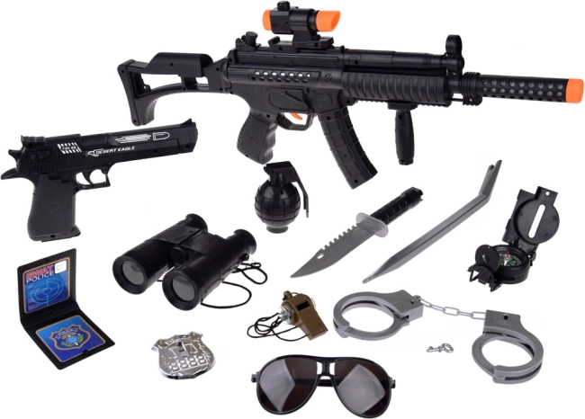 El set ofrece un equipo completo para un juego realista como agente de policía o oficial militar.