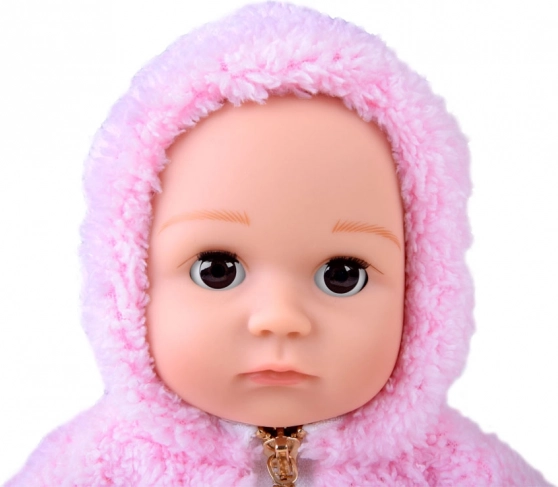 El conjunto de estilo incluye una sudadera rosa de peluche con capucha y cremallera y pantalones grises con lunares. En el paquete encontrarás también un chupete y un pañal, con los que los niños pueden practicar vestir y cambiar. La muñeca mide aproximadamente 43 cm, se adapta perfectamente a las manos infantiles y apoya el desarrollo de la imaginación, la motricidad fina y las habilidades sociales.