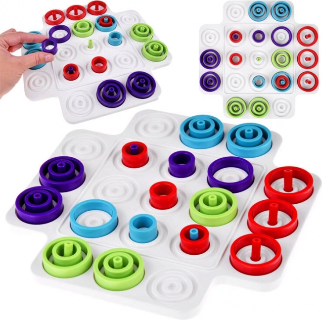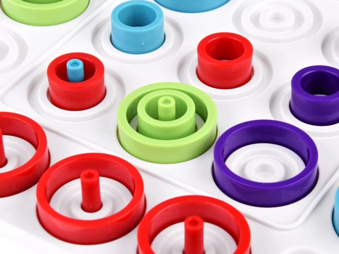 Los anillos de colores y las clavijas fomentan la coordinación ojo–mano, la imaginación espacial y la concentración: ideal para niños y adultos.