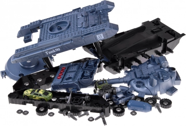 Este tanque detallado ofrece infinitas posibilidades de montaje y juego. El modelo está fabricado en plástico de alta calidad y está equipado con efectos de luz y sonido, incluyendo simulación de conducción, alarmas, disparos y otros elementos de escenas dramáticas. El set incluye un destornillador con puntas intercambiables, que permite el montaje y desmontaje del tanque. En el paquete también encontrarás dos pequeños vehículos militares para un juego aún más variado.