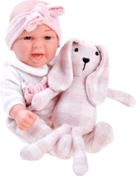 - Muñeca, conejito de peluche, 2 chupetes (blanco y rosa)