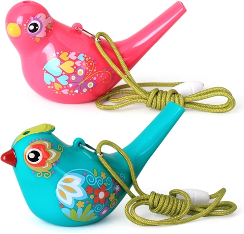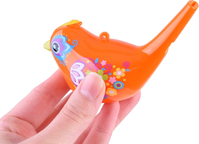 Este silbato de agua con forma de pájaro es ligero, resistente e ideal para niños. Sin agua emite un tono limpio y claro; al llenarlo con una pequeña cantidad de agua, el pajarito empieza a piar melódicamente. El volumen y la altura del tono se ajustan fácilmente con la cantidad de agua y la intensidad del soplido.