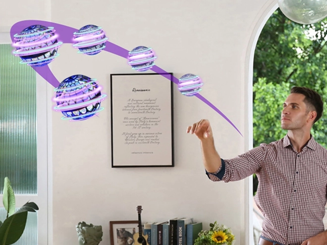 Esta pelota UFO interactiva ofrece mucha diversión para niños y adultos. Gracias a sus sensores inteligentes se eleva sobre la palma, reacciona a los obstáculos y, dentro de su jaula segura, resiste a los impactos. Los LED integrados crean llamativos efectos de luz que destacan especialmente en penumbra.