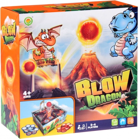 Los jugadores activan el volcán por turnos, colocan separadores y obstáculos, y tratan de “soplar” la pelota hacia las casillas con las fichas correspondientes. Gana quien complete el set de seis fichas de su color.