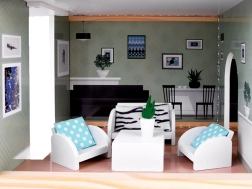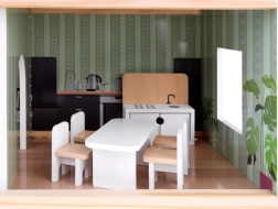 La casita está cuidadosamente diseñada con gráficos realistas y muebles de madera que aportan una sensación de vida real.