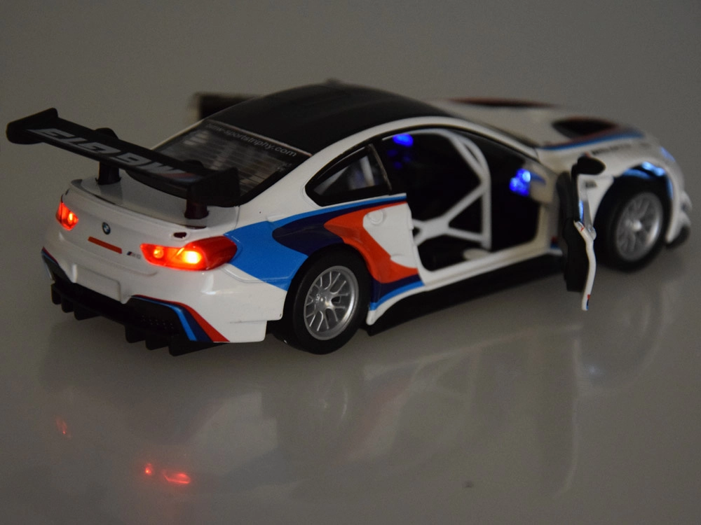 Disfruta del ambiente de competición con el modelo detallado del BMW M6 GT3. La carrocería metálica, las líneas precisas y los icónicos colores M Power proporcionan un aspecto realista, mientras que la construcción robusta con chasis de plástico asegura una larga vida útil tanto al jugar como al exhibirlo en tu colección.