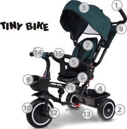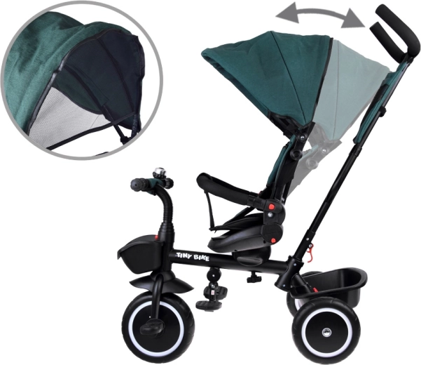 El práctico triciclo infantil 3 en 1 TINY BIKE crece con tu hijo desde los 6 meses hasta los 5 años. Ofrece asiento giratorio, capota plegable con ventilación, arnés de 5 puntos, frenos en las ruedas traseras y dirección parental con empuñadura ajustable. Las ruedas EVA sin cámara, el marco de acero resistente y su amplio equipamiento garantizan comodidad y seguridad en cada paseo.