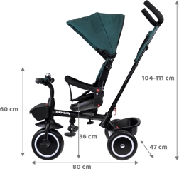 Los padres apreciarán el control fluido mediante la empuñadura conectada, los frenos de estacionamiento traseros, el fácil plegado de los reposapiés y la posibilidad de retirar elementos gradualmente a medida que el niño crece. Las ruedas EVA no requieren inflado y, junto con la estructura de acero resistente, garantizan estabilidad y durabilidad.