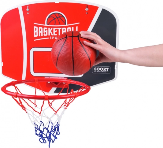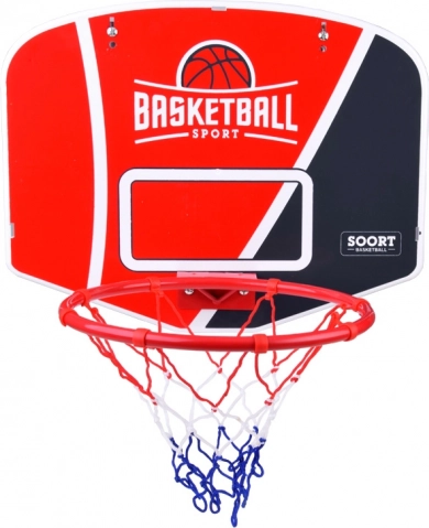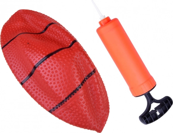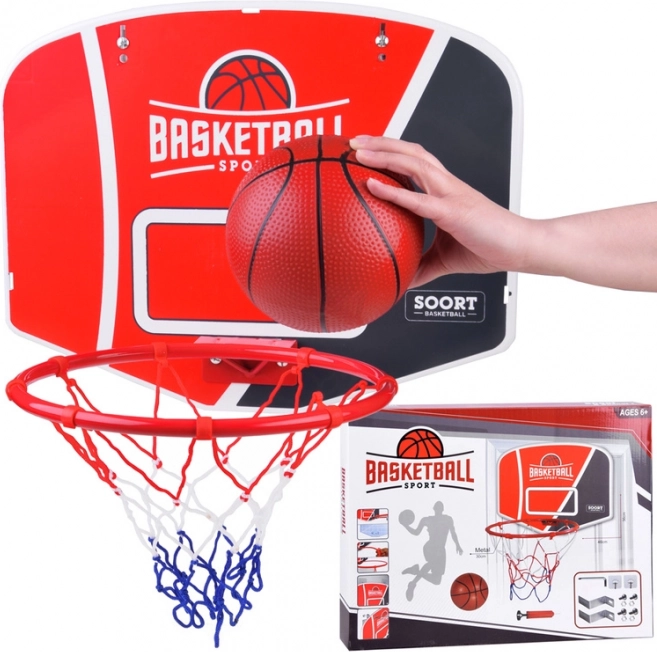 - Set completo: tablero, aro, red, balón, bomba y soportes de montaje