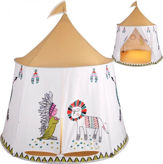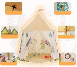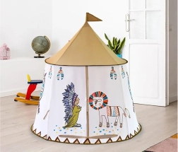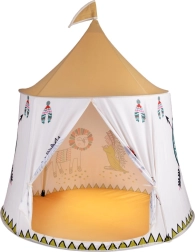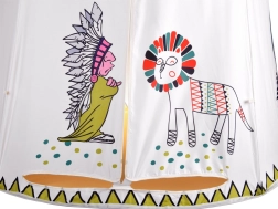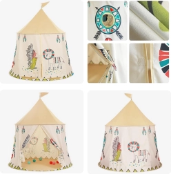 Este tipi redondo con divertidos estampados indígenas transforma la habitación en un rincón mágico para leer, juegos de rol y descanso. Su estructura ligera garantiza un montaje/desmontaje sencillo y un fácil traslado según sea necesario, mientras que el tejido transpirable ofrece un clima agradable durante el juego.