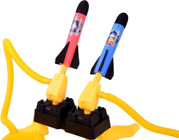 El gran set lanzacohetes infantil ofrece una excelente oportunidad para pasar tiempo al aire libre con la familia y los amigos. Este set está fabricado con plástico resistente, lo que garantiza seguridad y larga durabilidad. Los cohetes de espuma suave no dañan el interior del hogar ni lastiman a los niños.