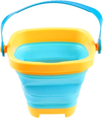 Incluye todo lo que los niños necesitan para un juego creativo en la arena: cubo plegable, pala, rastrillo y tres moldes.