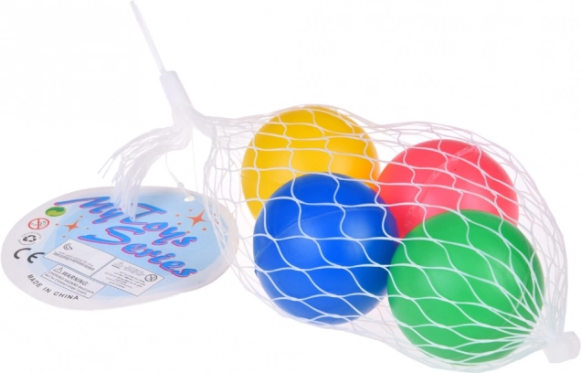 - Juego de 4 uds: bolas roja, amarilla, azul y verde en una práctica malla.