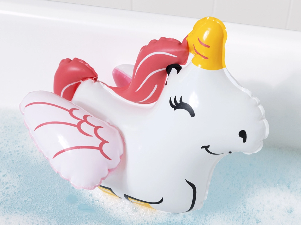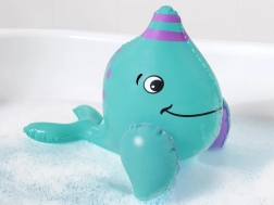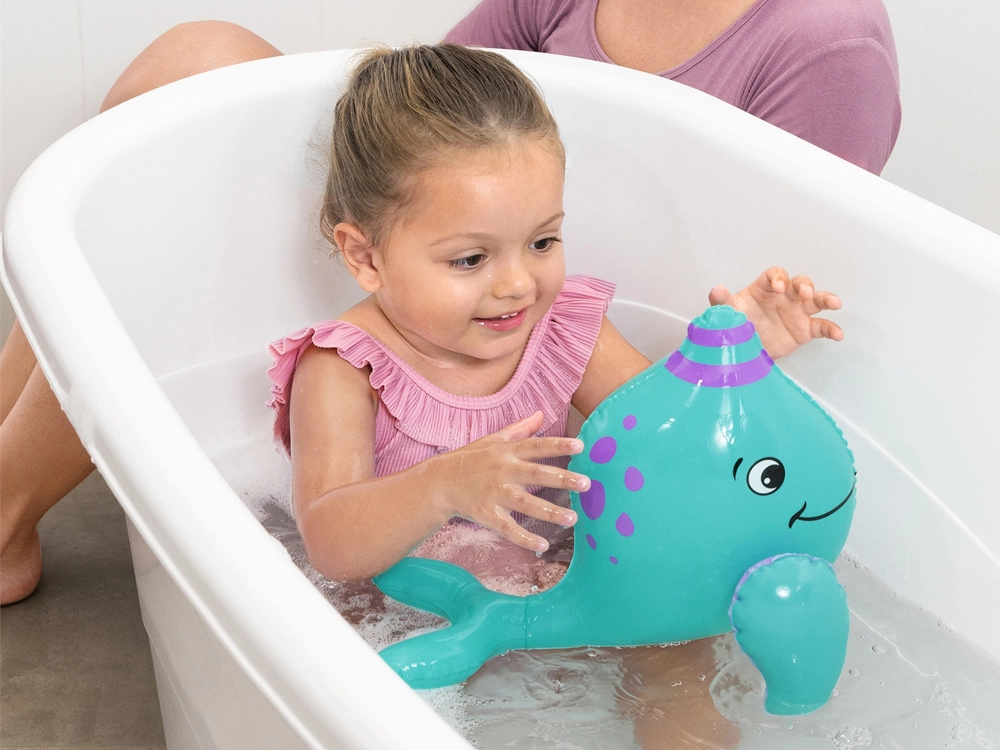 Los niños se sumergen en un mundo de fantasía al jugar con esta criatura inflable durante el baño.