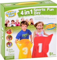 Este set versátil para actividades al aire libre ofrece a los niños horas de diversión activa. Con cuatro juegos diferentes, cada uno encontrará su favorito: desde carreras en sacos hasta disciplinas de equilibrio y retos por equipos. Los materiales resistentes y los colores llamativos garantizan competiciones seguras y claras para pequeños deportistas.