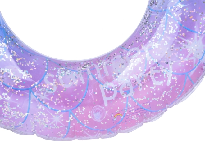 Elegante aro inflable para niños con diseño transparente y confeti brillante en el interior, un éxito veraniego para piscina y playa. Ligero, compacto y apto para niños a partir de 3 años. El diámetro de 80 cm garantiza una cómoda flotación y mucha diversión en el agua.
