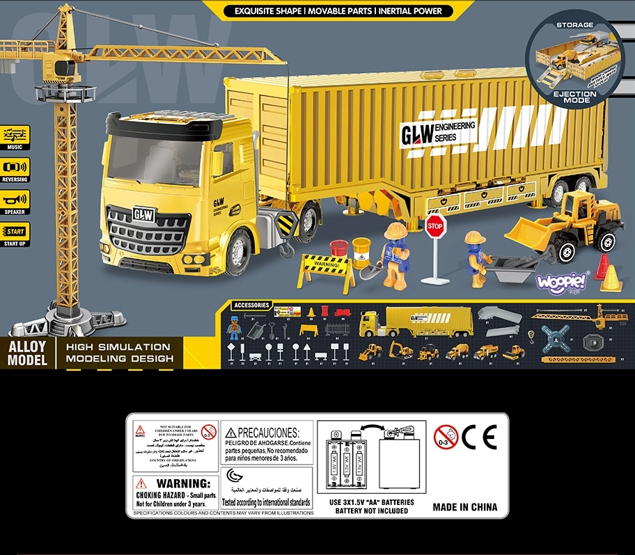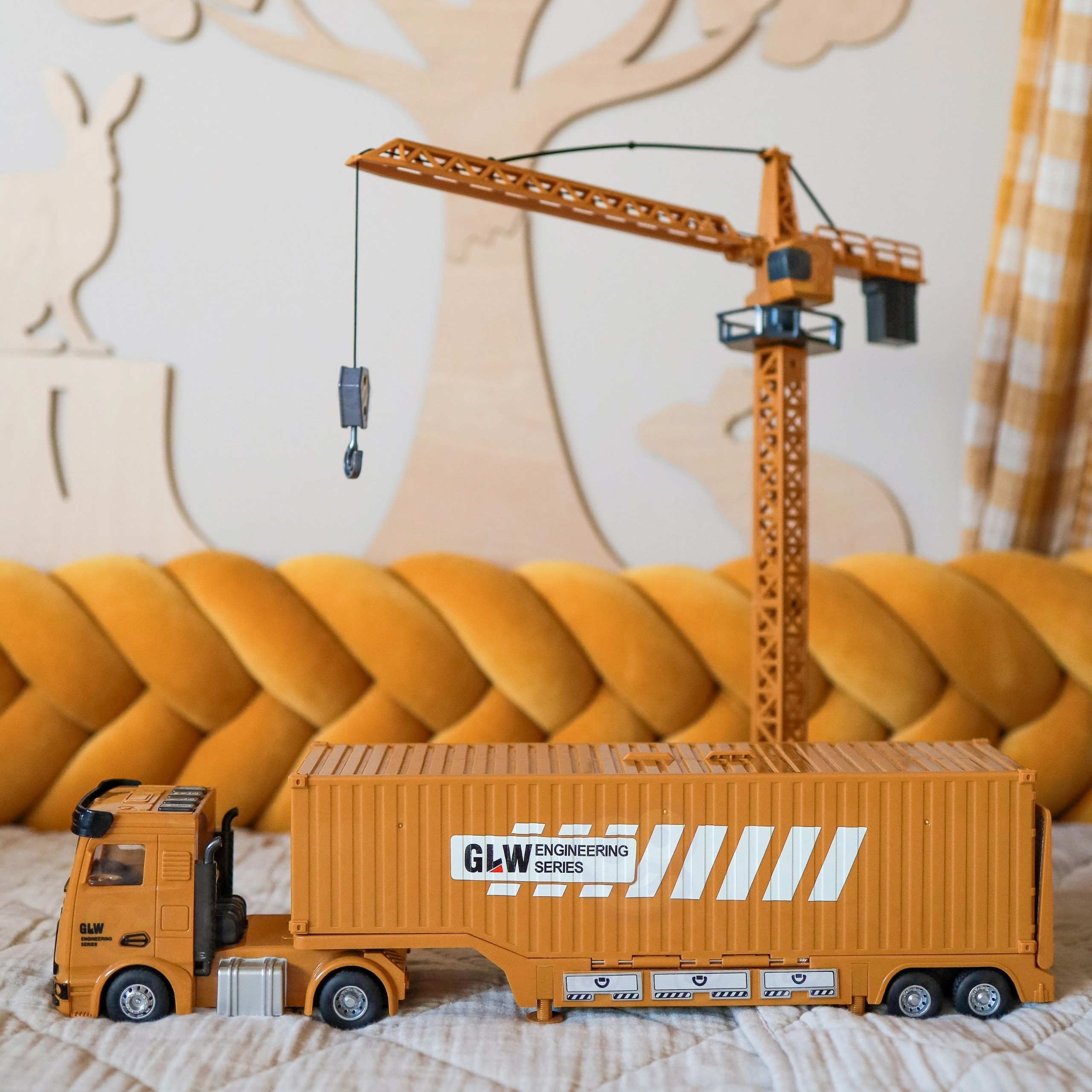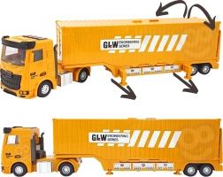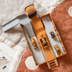 Descubre el set de construcción interactivo que transforma la habitación infantil en una obra viva. El camión TIR con contenedor abatible se convierte, al desplegarse, en un aparcamiento ordenado y zona de trabajo. En su interior encontrarás una rampa lanzadora para cochecitos, estabilizadores extensibles para una base firme y numerosos elementos escénicos para un juego realista.