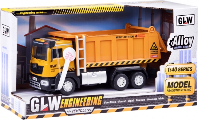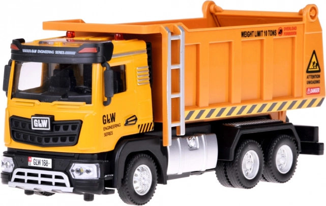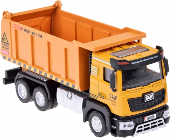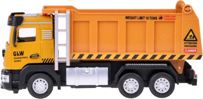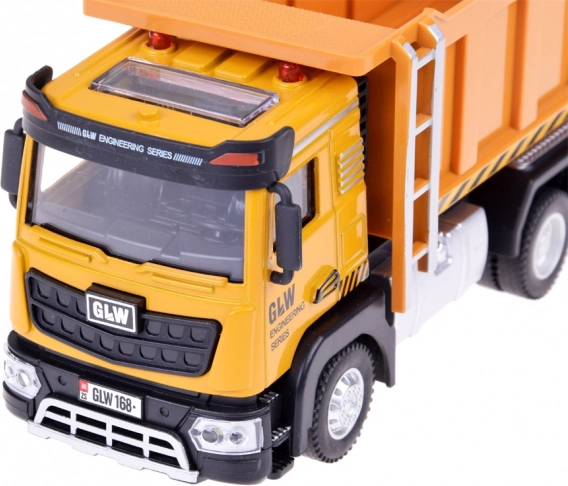 Realista volquete infantil para pequeños constructores con efectos de luz y sonido, carrocería metálica y mecanismo de inercia (pull-back). Gracias a la cabina abatible y a la caja basculante ajustable, el juego es aún más divertido y desarrolla la motricidad fina y la imaginación.
