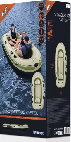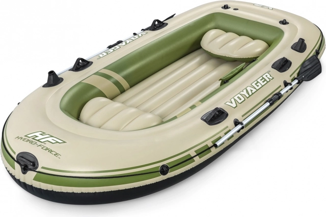 El bote cuenta con cojines inflables en los asientos y un suelo inflable que contribuyen a la comodidad durante la navegación. Al terminar la aventura, se enrolla y guarda sin esfuerzo en la bolsa resistente. Su carga máxima es de hasta 360 kg, lo que garantiza la seguridad de todos los pasajeros.