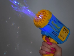 Una atracción adicional es el diodo integrado, situado en la parte frontal del dispositivo. Al apretar el gatillo, además de las burbujas aparece una luz LED que hace la diversión más atractiva y permite jugar al anochecer o incluso en total oscuridad. ¡El diodo ilumina hermosamente las burbujas, haciendo que brillen aún más!