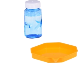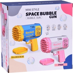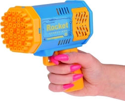 La pistola de burbujas es una máquina única para crear burbujas, ya que no tiene un depósito incorporado para el líquido. ¿Cómo creamos entonces esas preciosas esferas irisadas que se elevan al cielo? ¡Es sencillo! Basta con verter una pequeña cantidad del líquido incluido en el set en el cuenco rosa poco profundo y mojar en él la parte frontal de la pistola. Luego apunta y aprieta el gatillo. ¡Aparecerá un espectáculo impresionante ante nosotros! De 40 orificios saldrán formas redondas y brillantes que despertarán gritos de alegría en muchos niños. Y los adultos también quedarán muy impresionados.