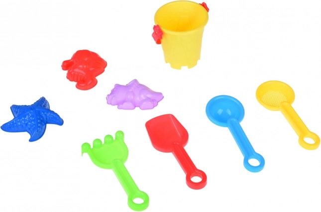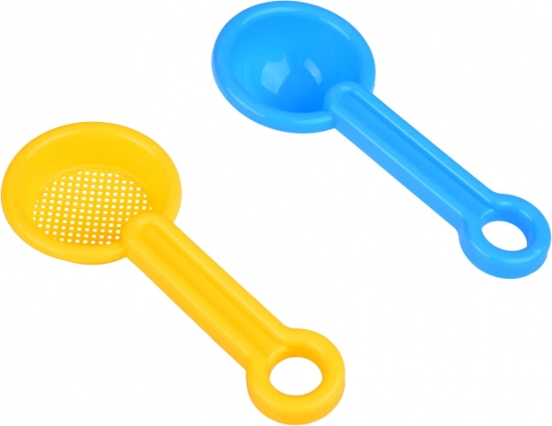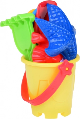 El cubo, las 2 palas, el rastrillo y el tamiz permiten a los niños cavar, colar y moldear la arena. Conjunto ideal para construir castillos y juegos creativos al aire libre.