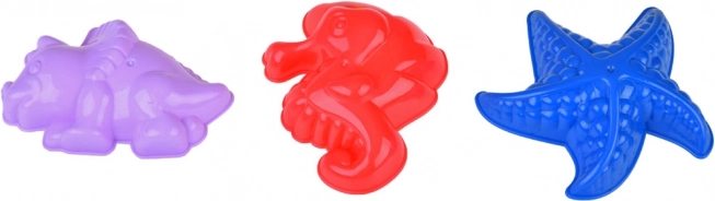 Los moldes con forma de dinosaurio, caballito de mar y estrella de mar enriquecen cualquier construcción de arena y fomentan la imaginación infantil.