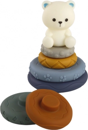 La pirámide de colores con un oso blanco en la parte superior ayuda a los niños con la coordinación mano-ojo y el pensamiento lógico.