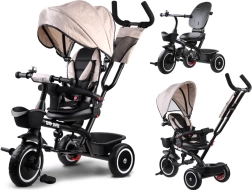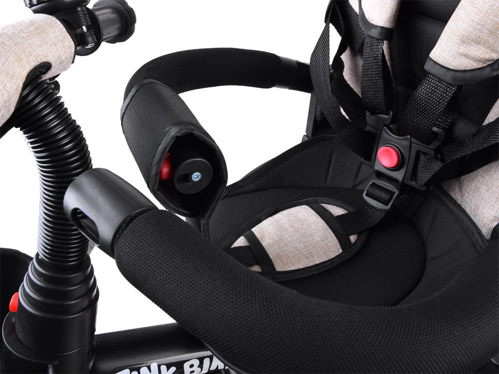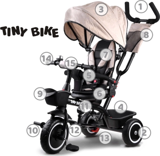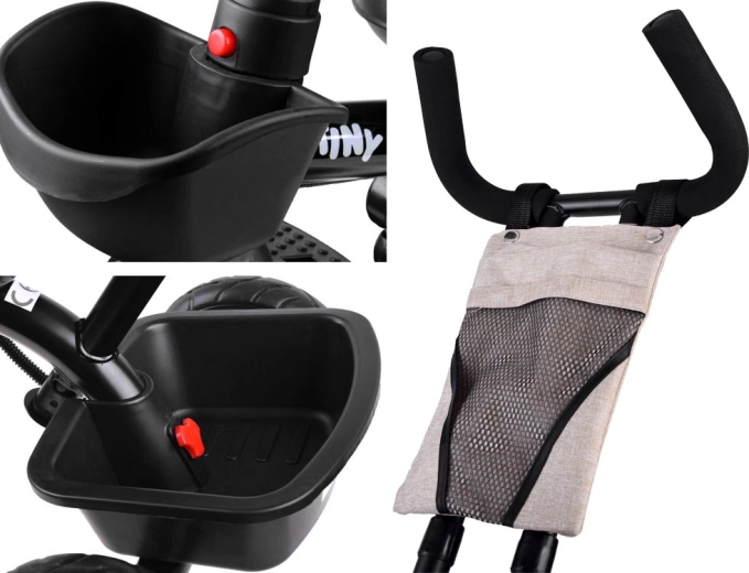 El práctico triciclo infantil 3 en 1 TINY BIKE crece con tu hijo desde los 6 meses hasta aprox. 5 años. Ofrece asiento giratorio y ajustable, capota con malla, arnés de seguridad de 5 puntos, dirección parental con altura regulable y ruedas sin mantenimiento de espuma EVA. Gracias a su sólida estructura de acero y su amplio equipamiento, es ideal para los paseos diarios.
