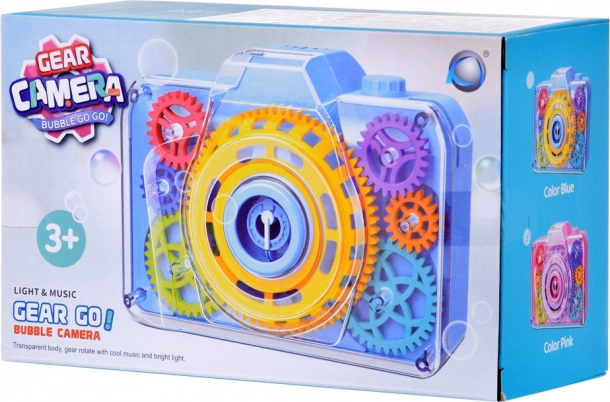 Cámara de burbujas para niños con engranajes visibles y efectos de luz