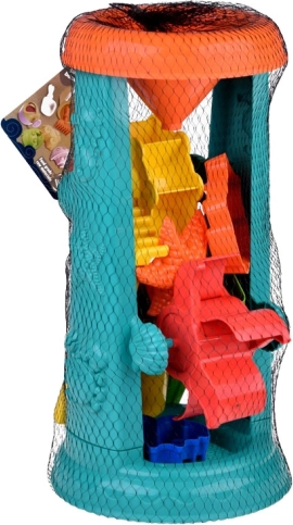 También hay una regadera para compactar la arena, lo que estimula la creatividad y la imaginación de los niños. Los diferentes moldes permiten crear y construir castillos, favoreciendo el desarrollo de la motricidad fina.
