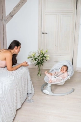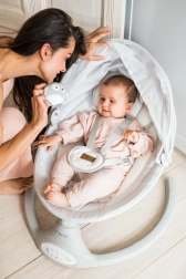 Los movimientos laterales naturales imitan el balanceo en el vientre y favorecen un sueño más rápido. El motor silencioso no molesta ni al bebé ni a ti.