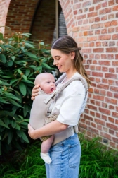 MoMi Collet es un portabebés cómodo y seguro que respeta la posición fisiológica natural del bebé. El panel frontal ancho y ajustable favorece el desarrollo saludable de la columna, mientras que la postura ergonómica mantiene las piernecitas en posición “M” para un cuidado suave de las articulaciones de la cadera. Para el adulto, el portabebés ofrece un reparto equilibrado del peso gracias al cinturón lumbar ancho y a los tirantes acolchados.