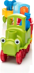 Los niños montarán una locomotora y tres vagones, colocarán dos animales de tres partes y añadirán al maquinista. Las distintas partes de los animales se pueden combinar libremente, creando animales reales y fantásticos que fomentan el pensamiento creativo y la coordinación ojo–mano.